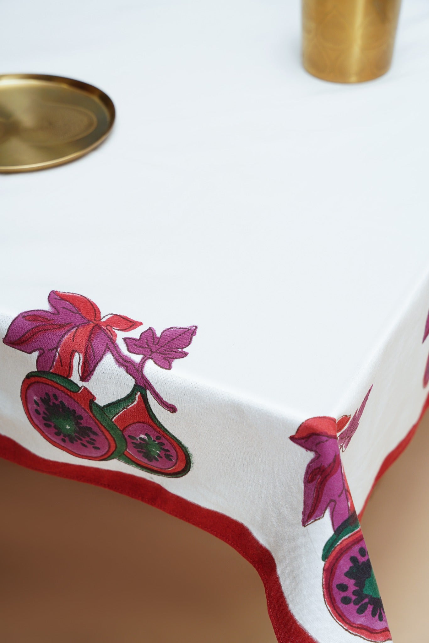 Our Wild Fig Collection draws inspiration from the freshness and intricate forms of figs. Each table cover is block printed by master artisans in Jaipur, India, in a small, family run workshop. Made from pure cotton, each tablecloth is crafted through a slow, artisanal process and available in different colorways for a variety of looks.