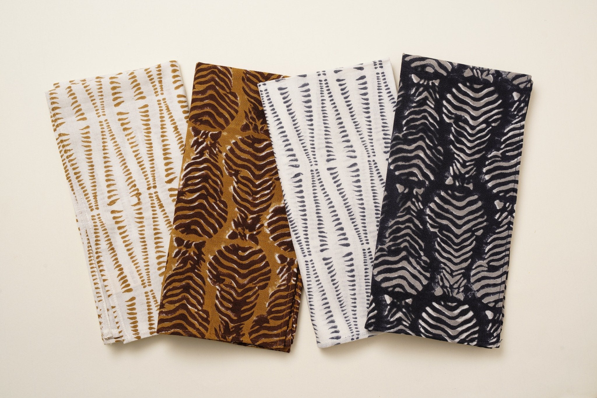 Our Tigers of Sundurban Collection draws inspiration from the strength and beauty of the majestic tigers. Each napkin is block printed by master artisans in Jaipur, India, in a small, family run workshop. Made from pure linen with a luxurious hand feel, each napkin is crafted through a slow, artisanal process and available in different colorways for a variety of looks.